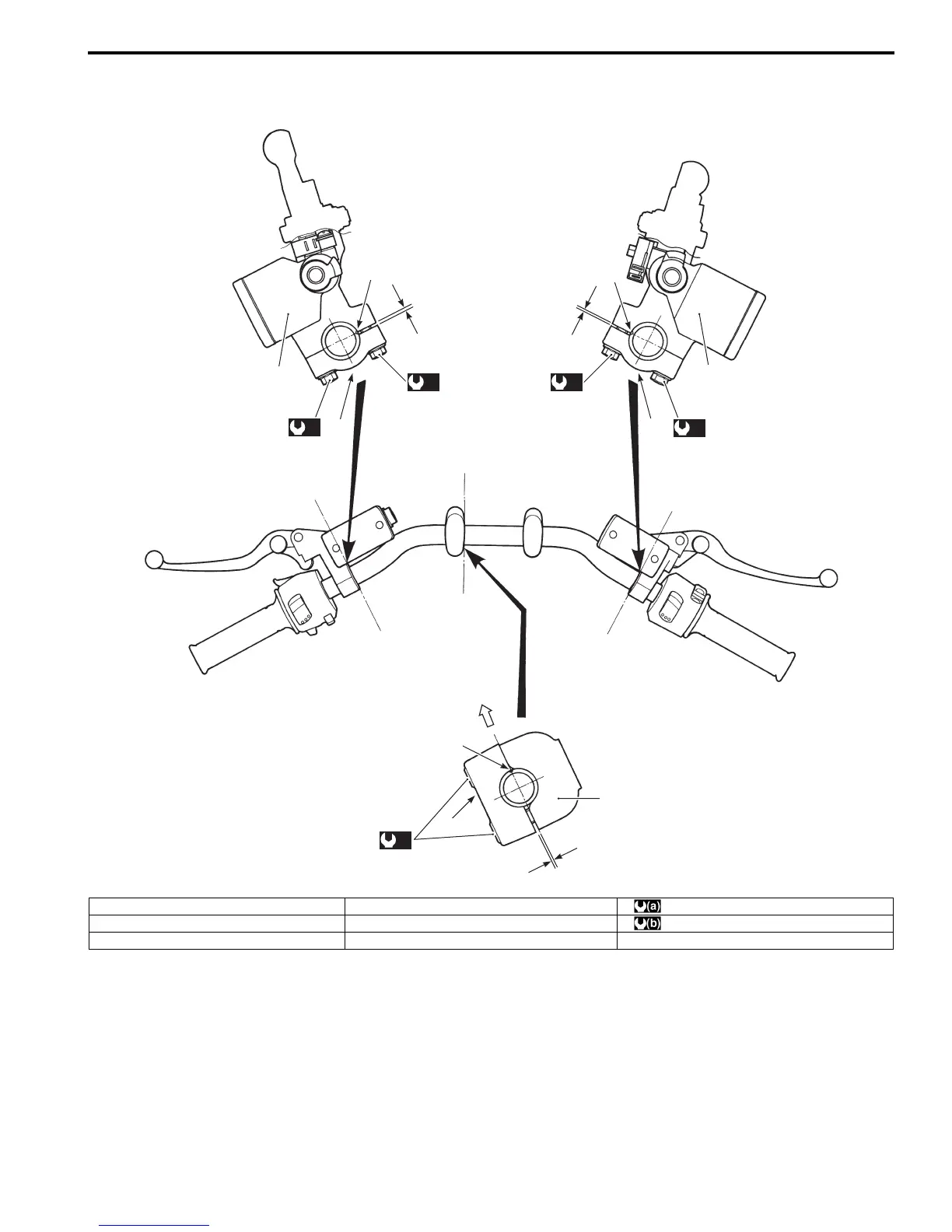 2. Front brake master cylinder “B”: UP mark : 23 N⋅m (2.3 kgf-m, 16.5 lb-ft)