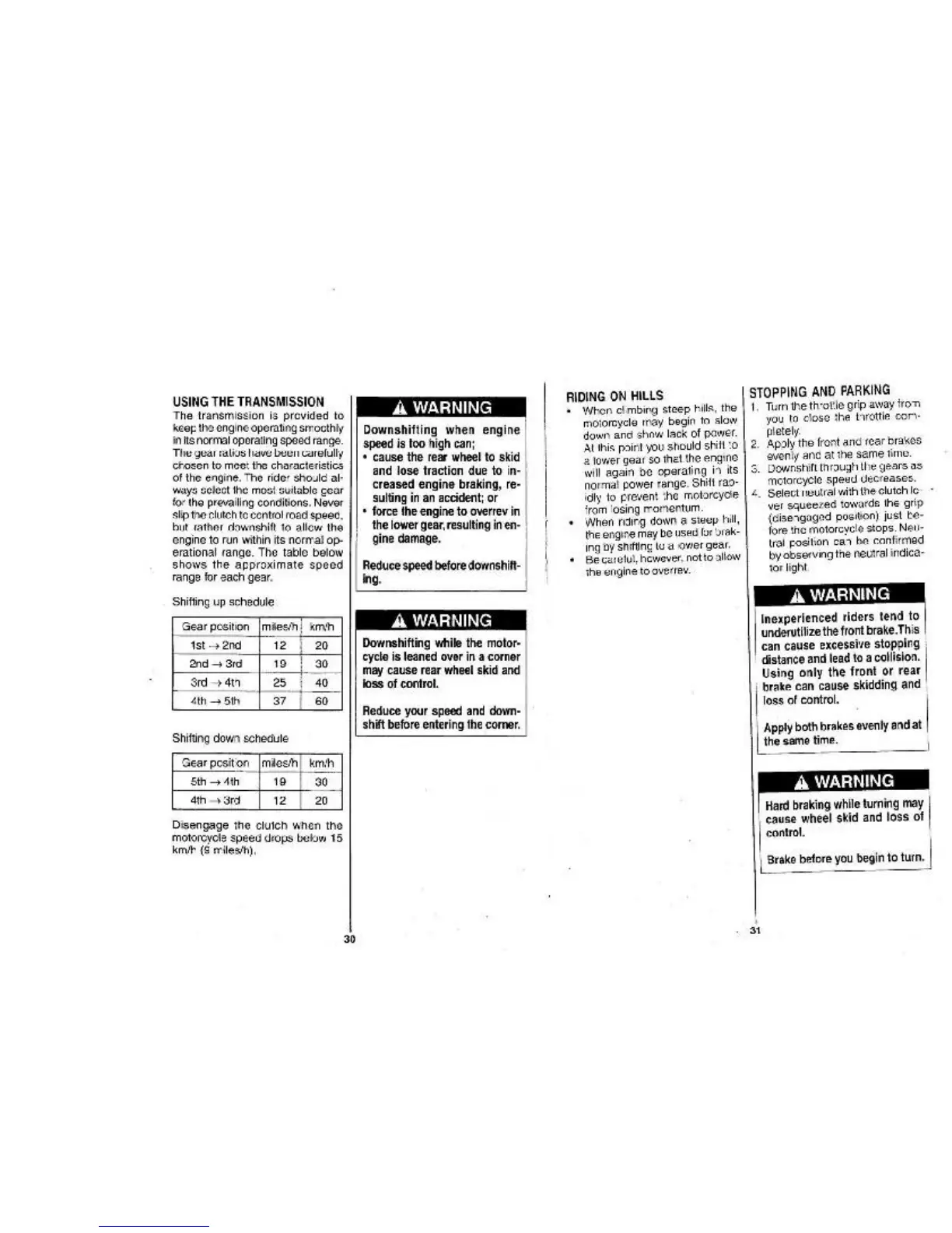Suzuki GZ250 - Operation and Maneuvers; Using the Transmission Effectively; Riding on Hills and Stopping;Parking