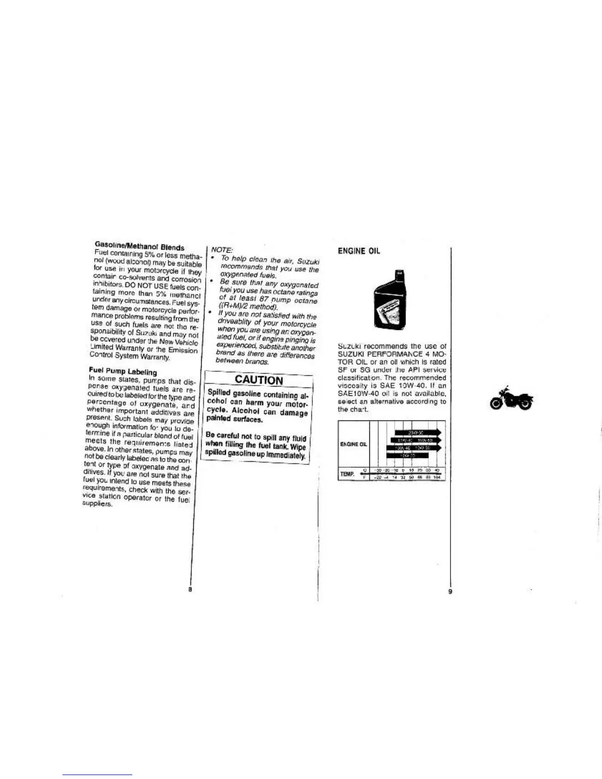 Suzuki GZ250 - Gasoline;Methanol Blends; Fuel Pump Labeling; Recommended Engine Oil