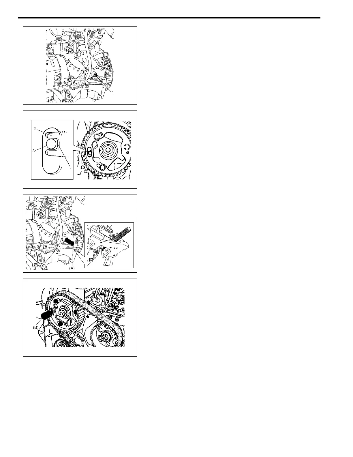 11) Check that special tool (B) inserts holes of camshaft pulley