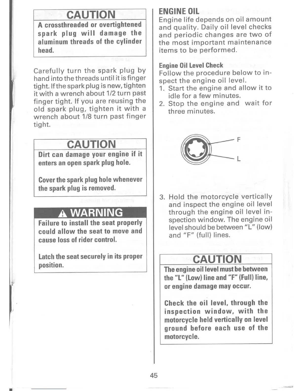 Suzuki LS650P - Engine Oil Service; Engine Oil Level Check Procedure