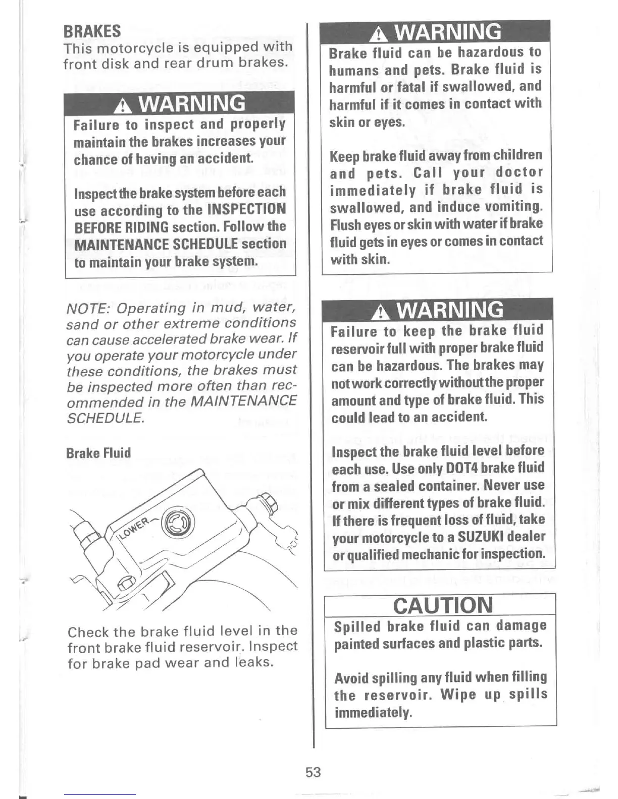 Suzuki LS650P - Brake System Service; Brake Fluid Level and Type