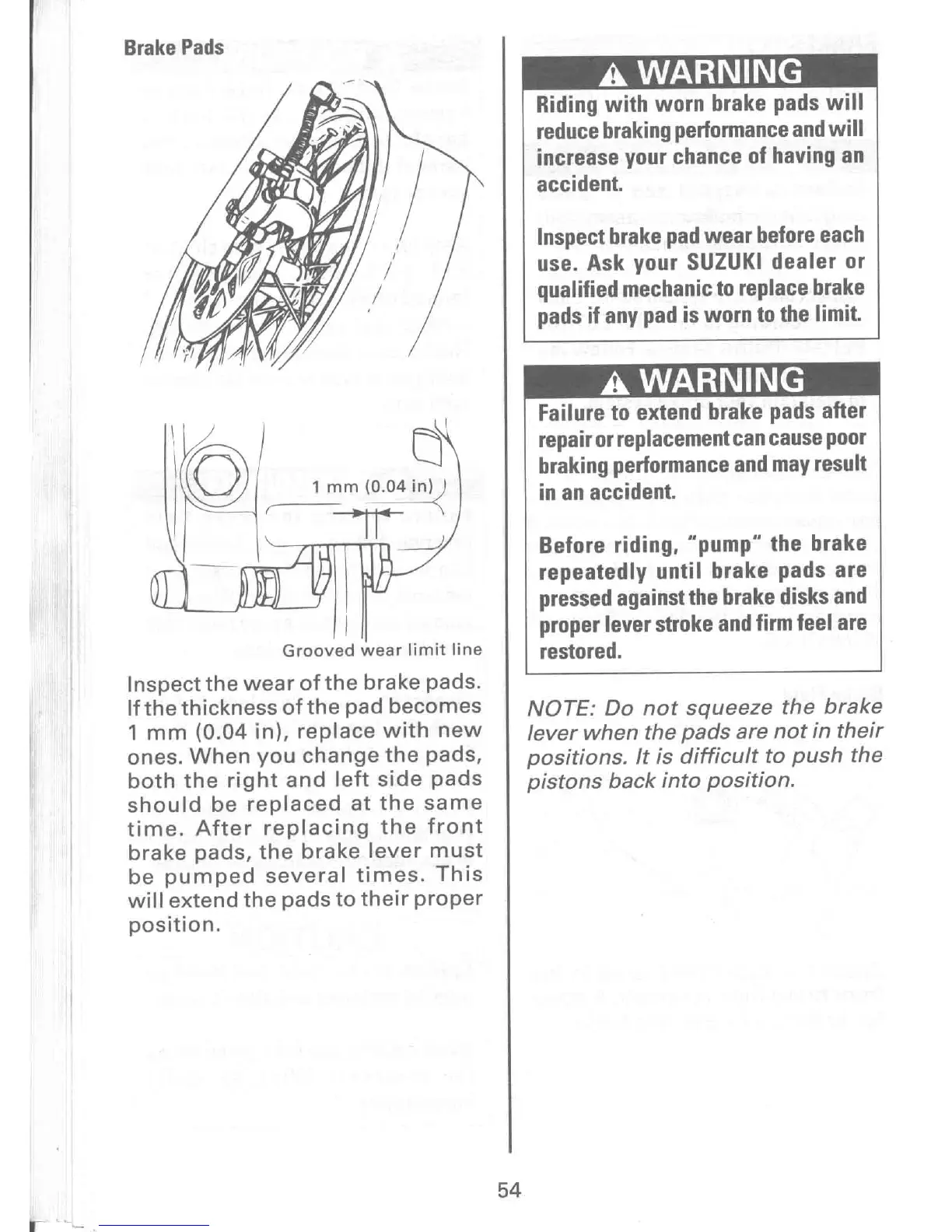 Suzuki LS650P - Brake Pad Wear and Replacement