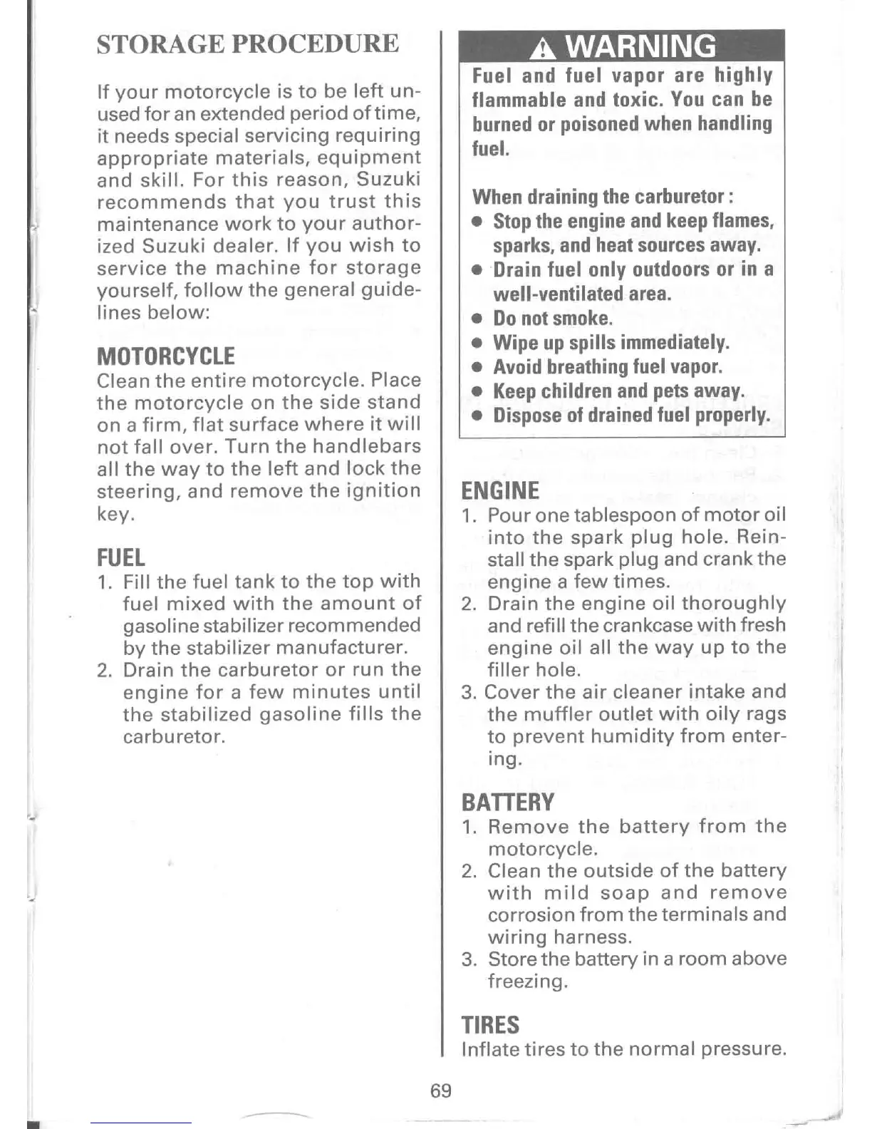 Suzuki LS650P - Motorcycle Storage Procedures; Preparing the Motorcycle for Storage