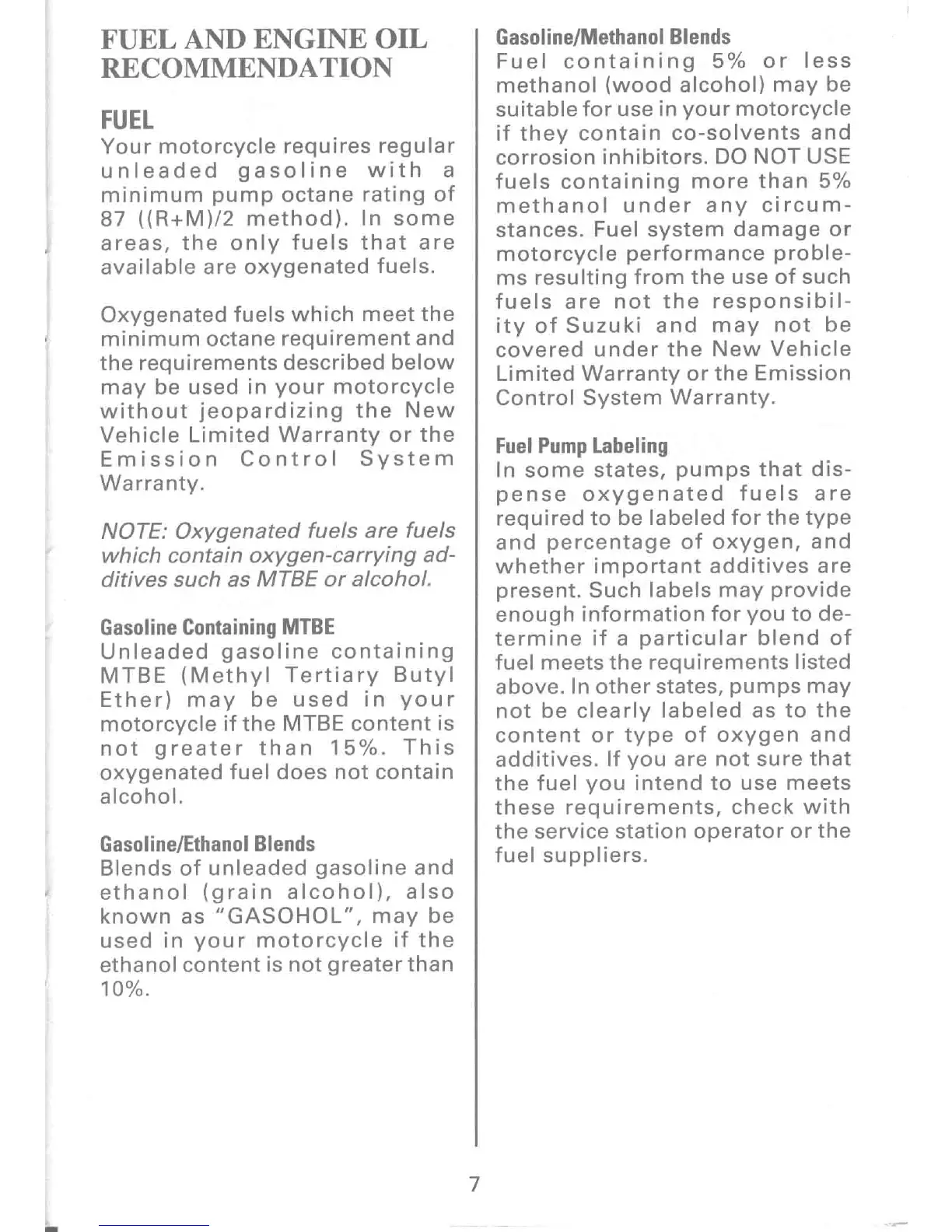 Suzuki LS650P - Fuel and Engine Oil Recommendations; Fuel Requirements and Blends