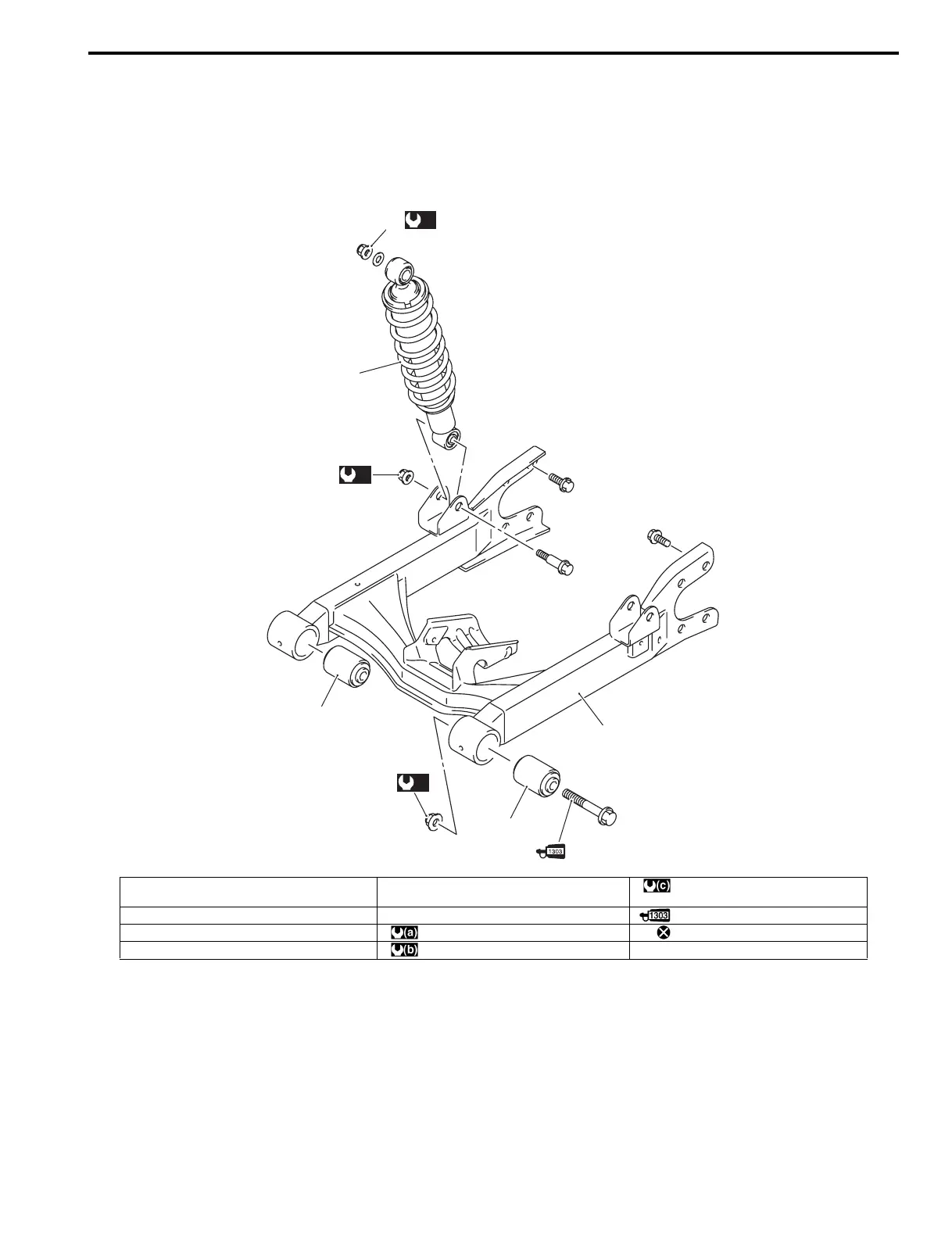 2. Swingarm 6. Swingarm pivot nut : Apply thread lock to thread part.