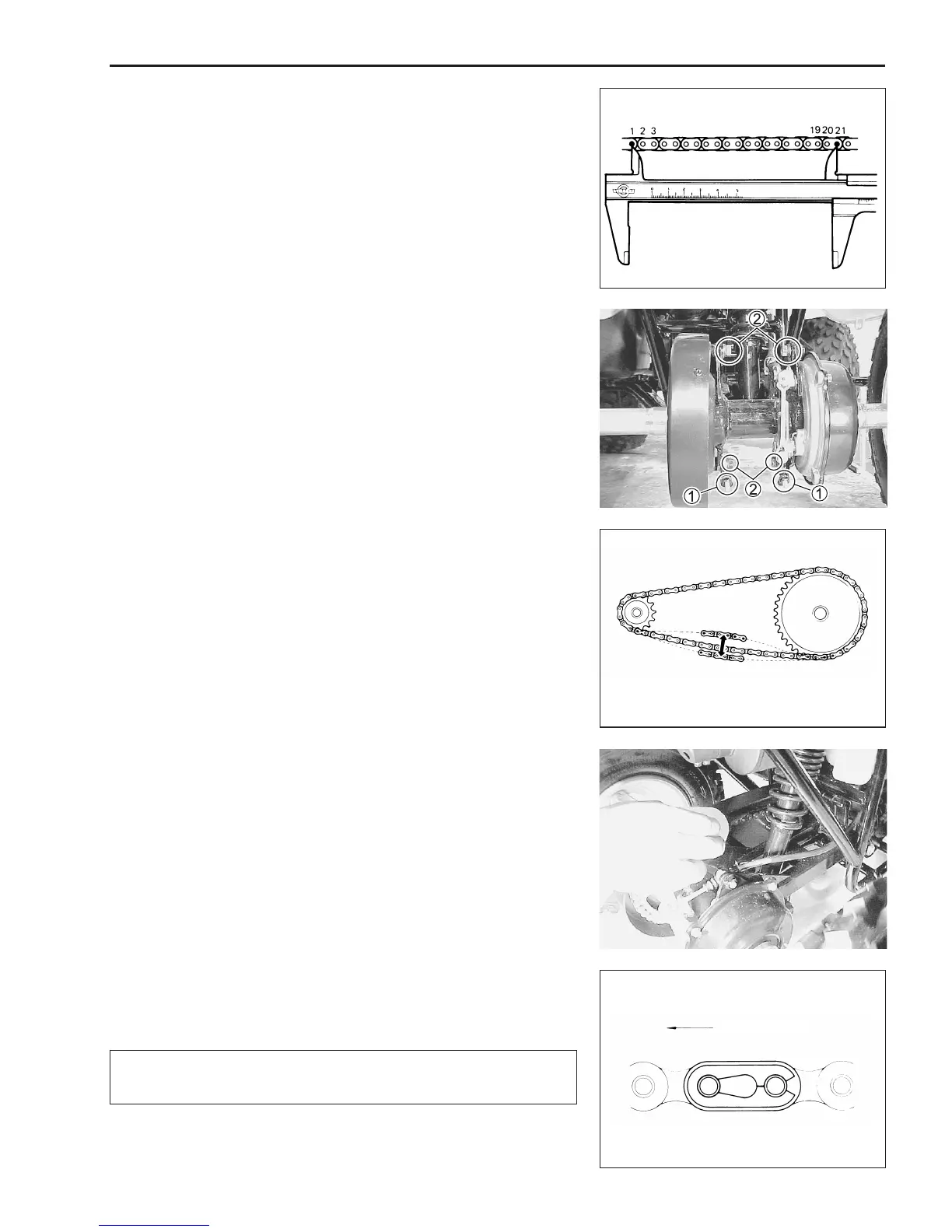 • Recheck the chain slack after tightening the bolts 2.
