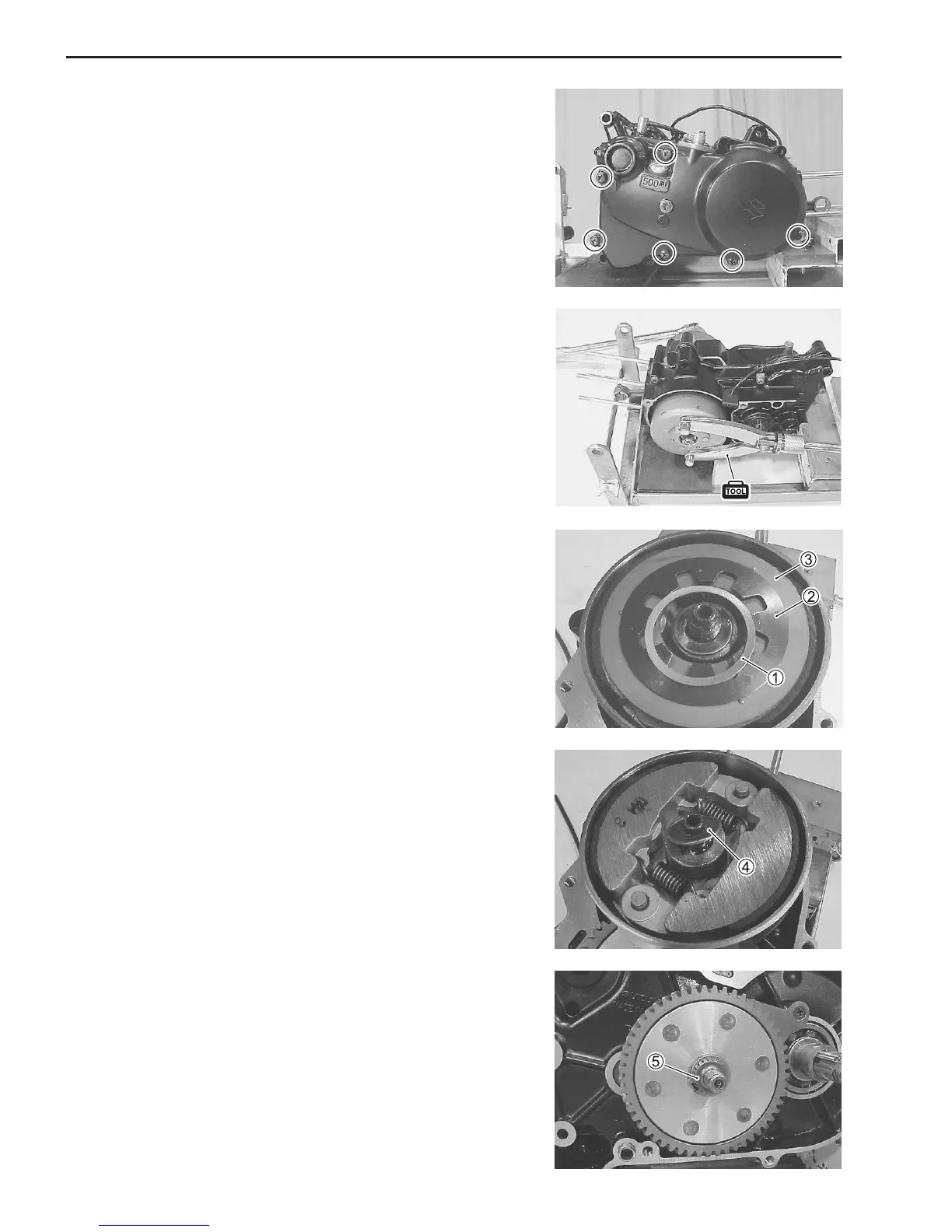 • Remove the washer 4 and clutch shoe assembly, clutch drum.