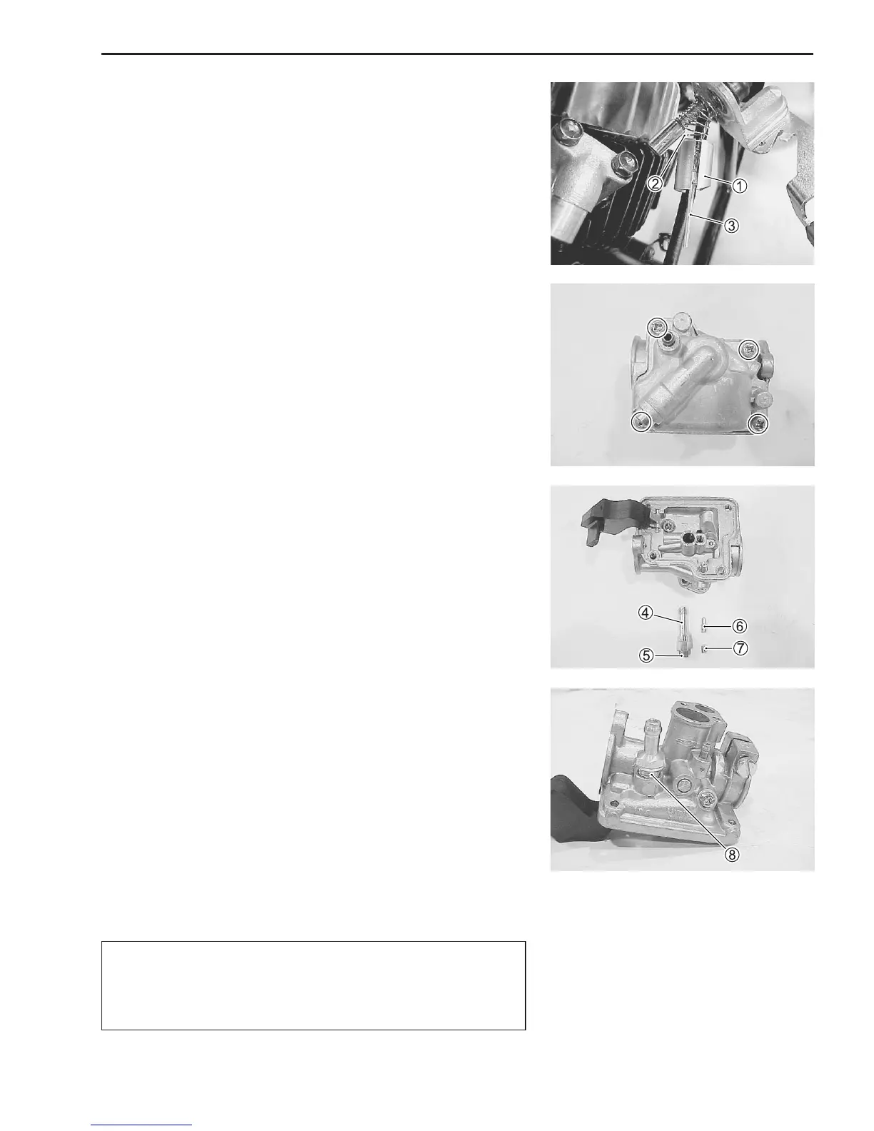 • Remove the main jet 4, needle jet 5, pilot jet No.1 6 and pilot