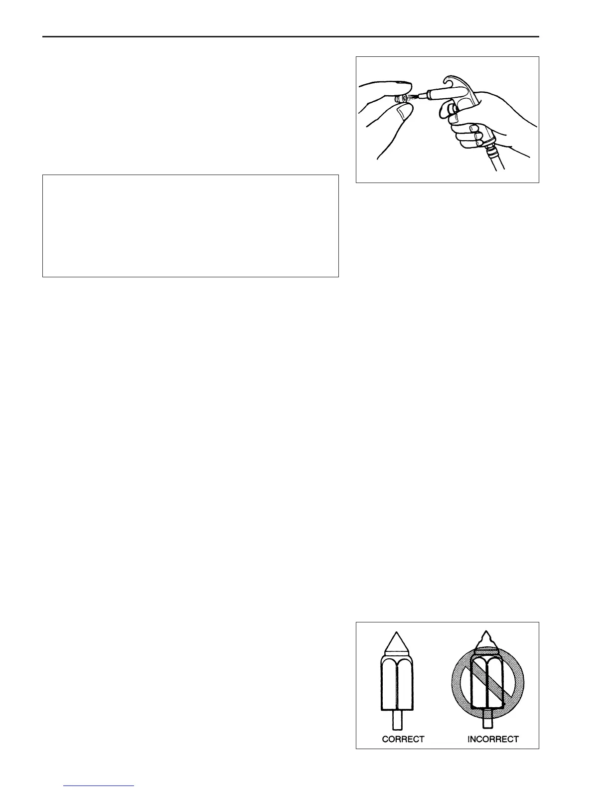 If the needle valve is worn, as shown in the illustration, replace