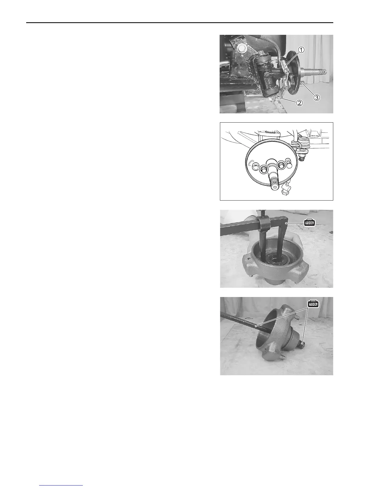 • Remove the wheel hub inner and outer bearing using the spe-