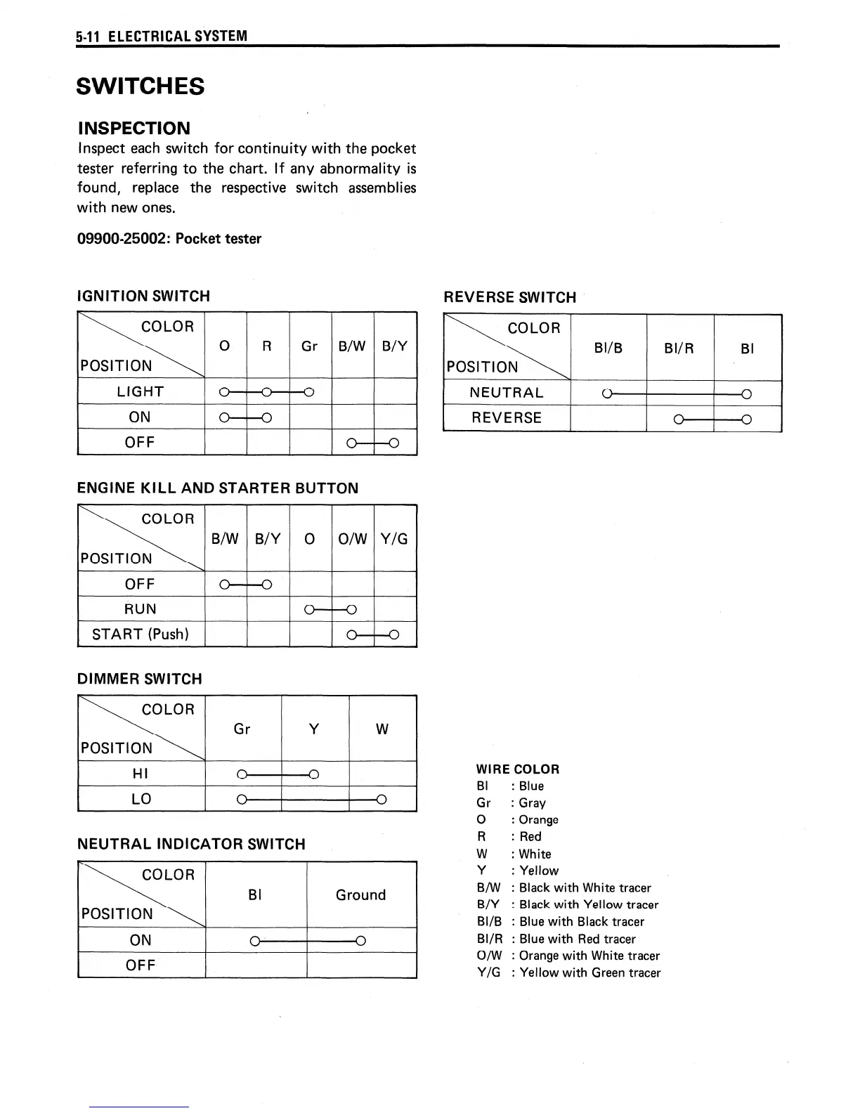 Suzuki LT160E - Switches Inspection