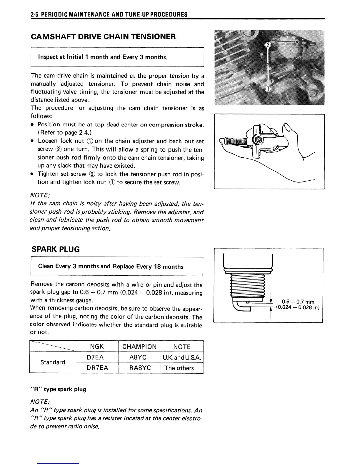 Suzuki LT160E - Camshaft Drive Chain Tensioner; Spark Plug