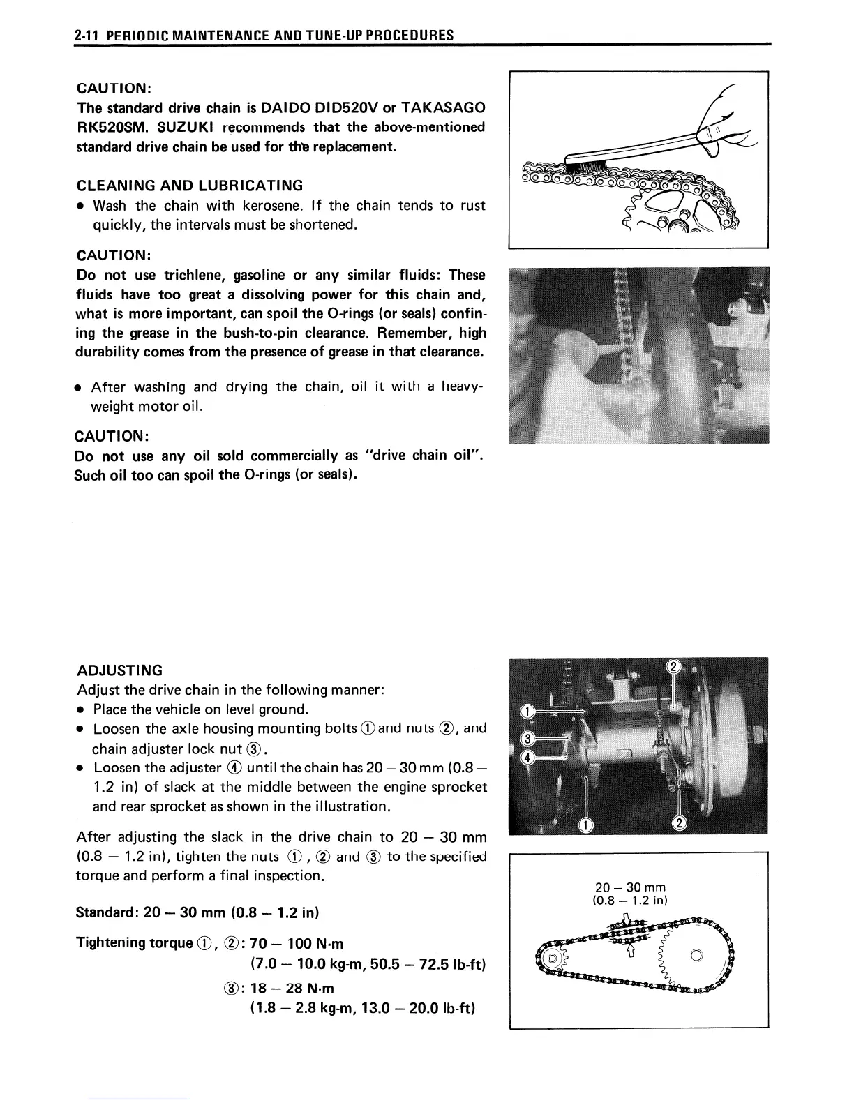 Suzuki LT160E - Cleaning and Lubricating; Adjusting