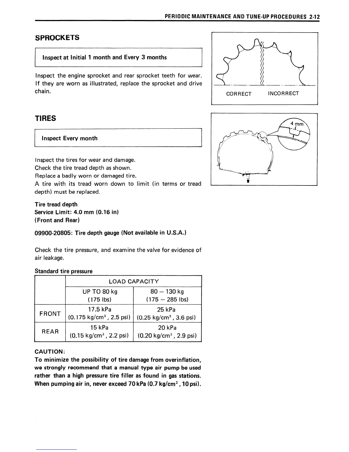 Suzuki LT160E - Sprockets; Tires; Standard Tire Pressure