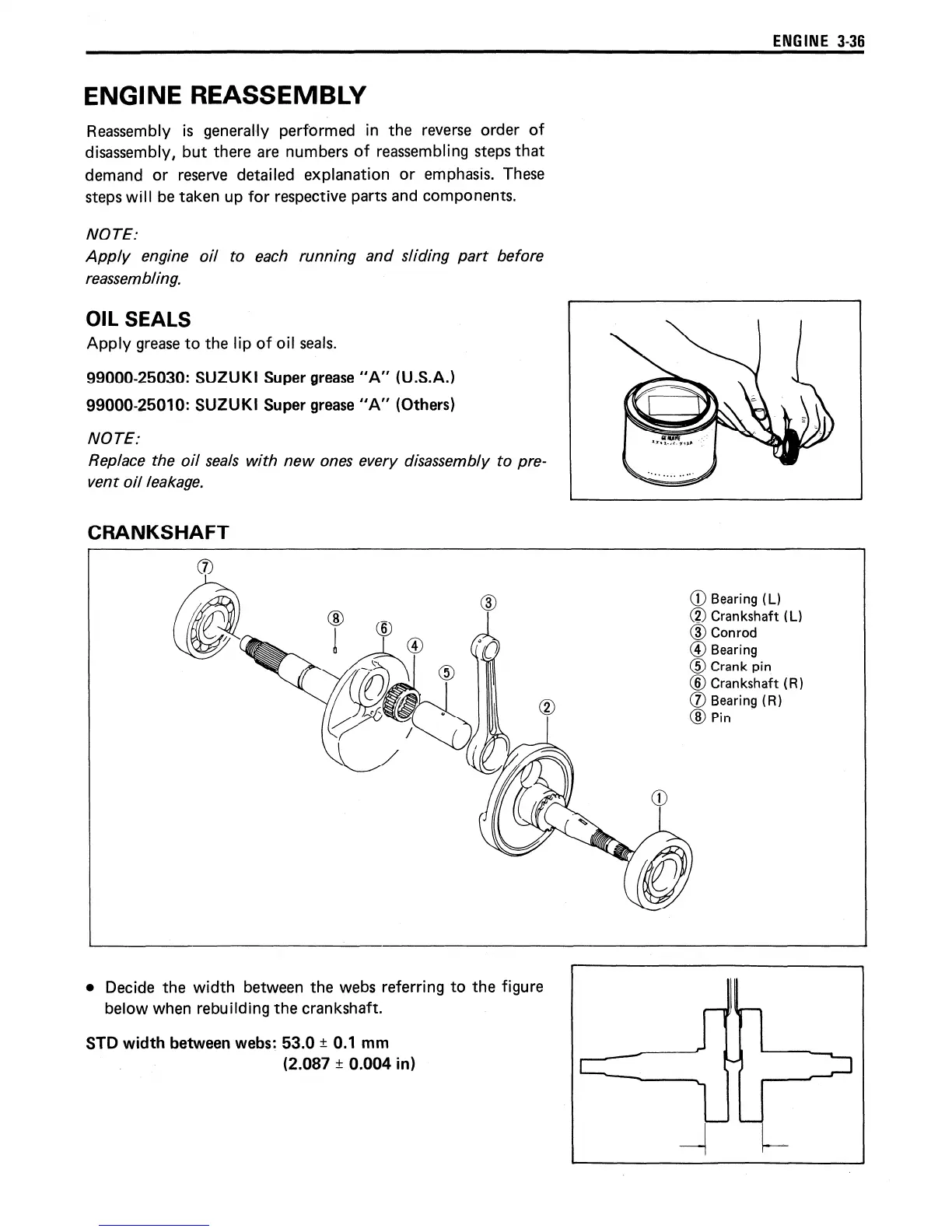 Suzuki LT160E - Engine Reassembly; Oil Seals; Crankshaft