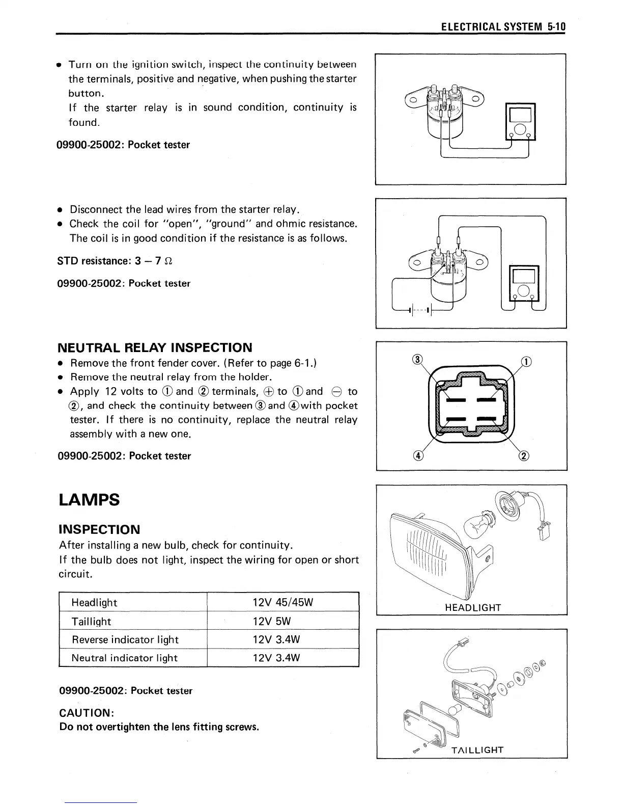 Suzuki LT160E - Lamps; Neutral Relay Inspection