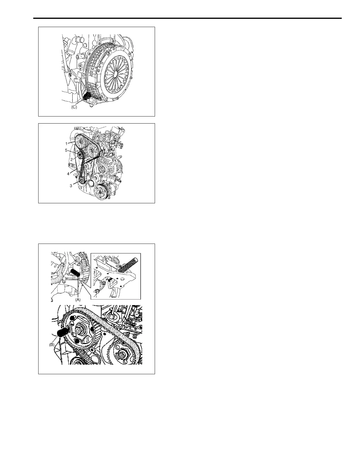 15) Remove timing belt tensioner (5), timing belt pulley and tim-