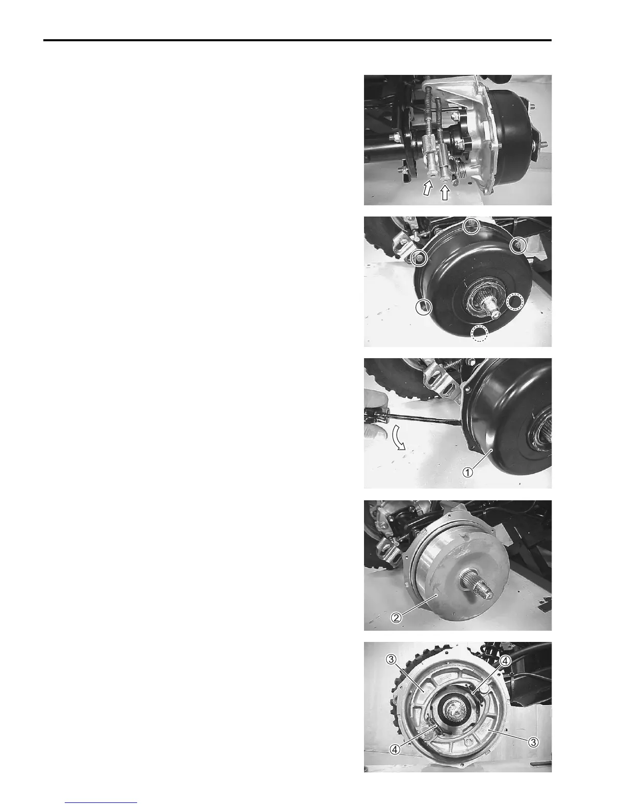 • Remove the brake shoes 3 and springs 4.