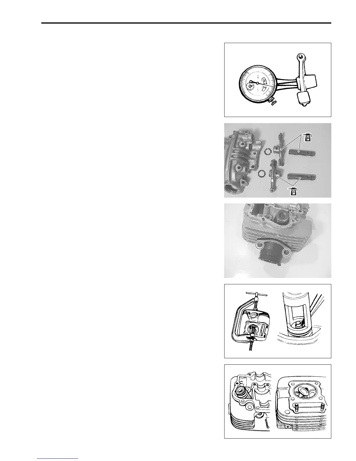 • Compress the valve spring and remove the valve cotters from