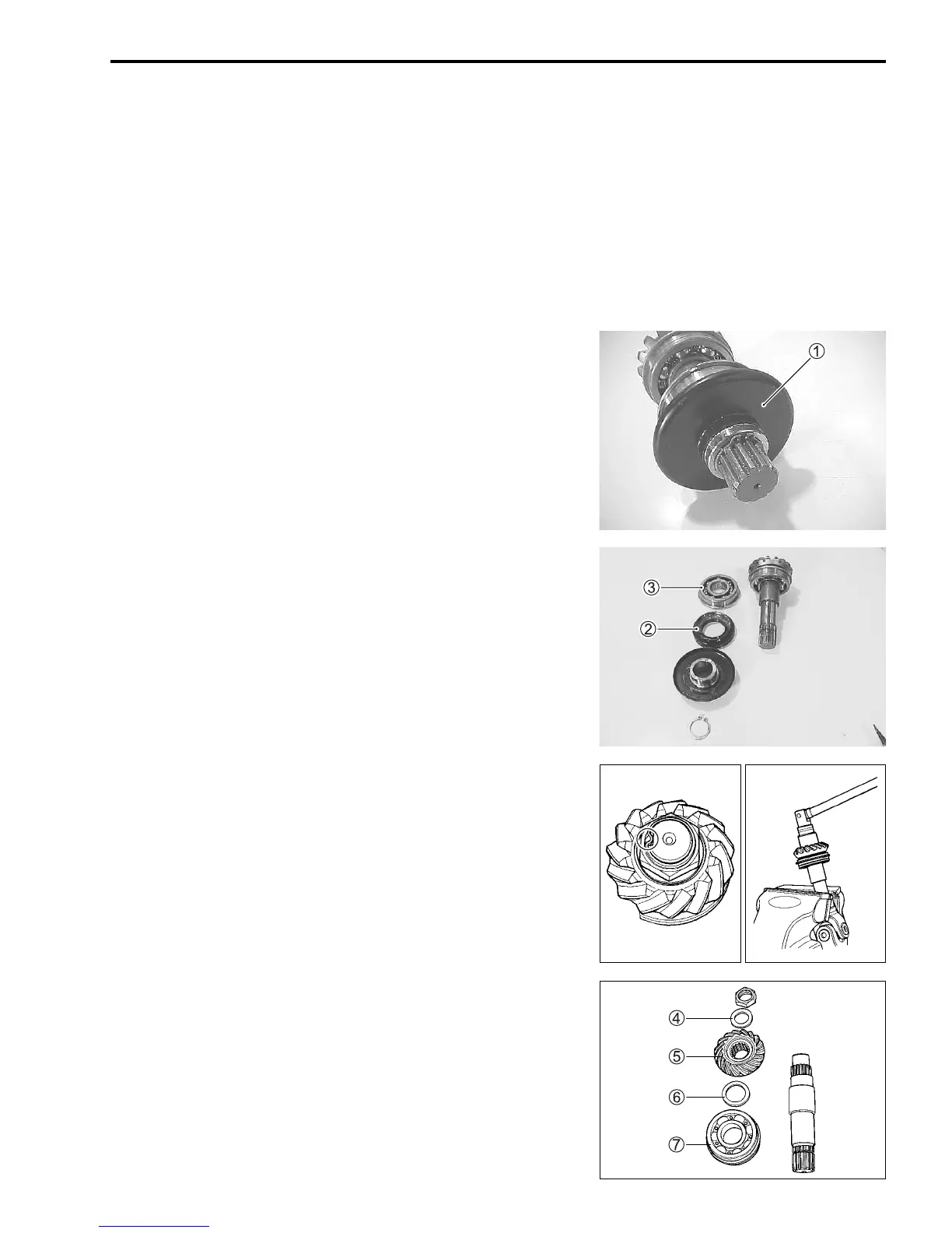• Remove the washer 4, bevel gear 5, shim 6 and bearing