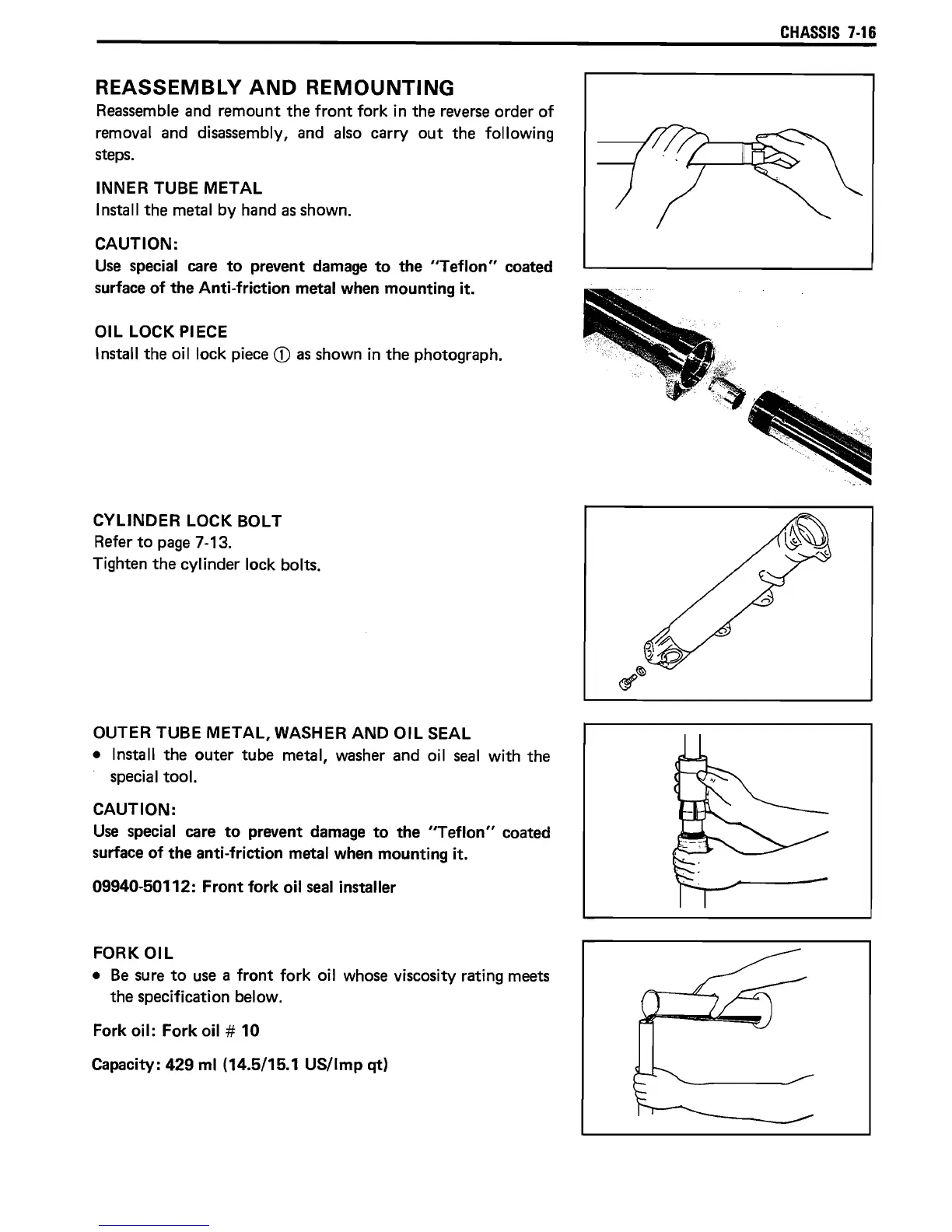 • Install the outer tube metal, washer and oil