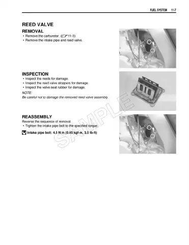 Suzuki RM 125 - Reed Valve Removal; Reed Valve Inspection; Reed Valve Reassembly