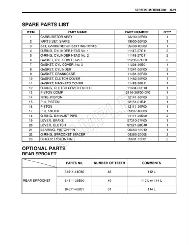 Suzuki RM 125 - Spare Parts List; Optional Parts