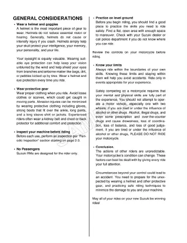 Suzuki RM 125 - General Considerations; Riding Safety and Preparation; Riding Techniques and Awareness