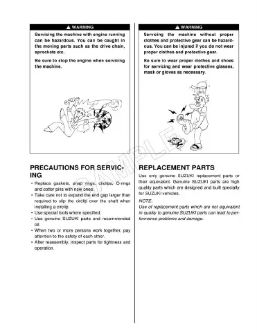 Suzuki RM 125 - Precautions for Servicing; Servicing Precautions; Replacement Parts Usage