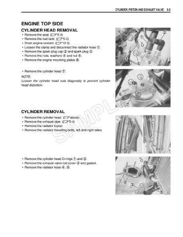 Suzuki RM 125 - Engine Top Side; Cylinder Head Removal; Cylinder Removal