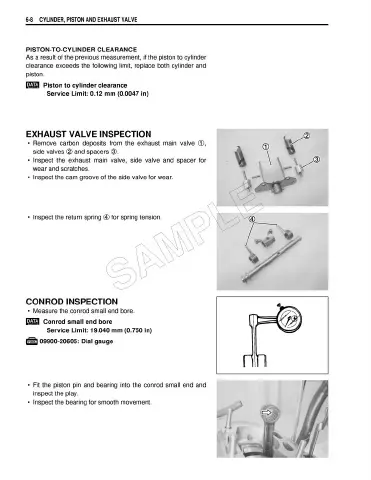 Suzuki RM 125 - Exhaust Valve Inspection; Conrod Inspection; Piston-To-Cylinder Clearance
