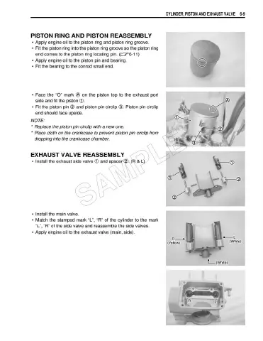 Suzuki RM 125 - Piston Ring and Piston Reassembly; Exhaust Valve Reassembly