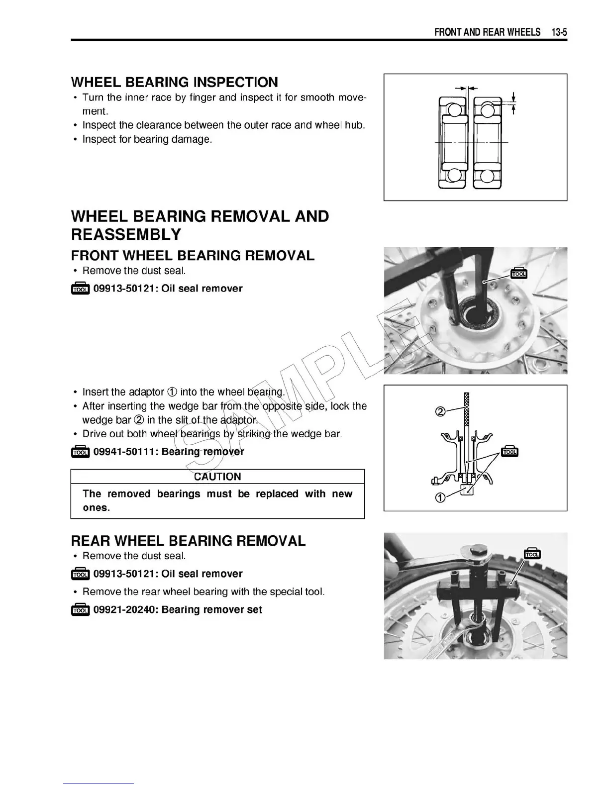 Suzuki RM 250 - Front and Rear Wheel Inspection; Wheel Bearing Removal and Reassembly