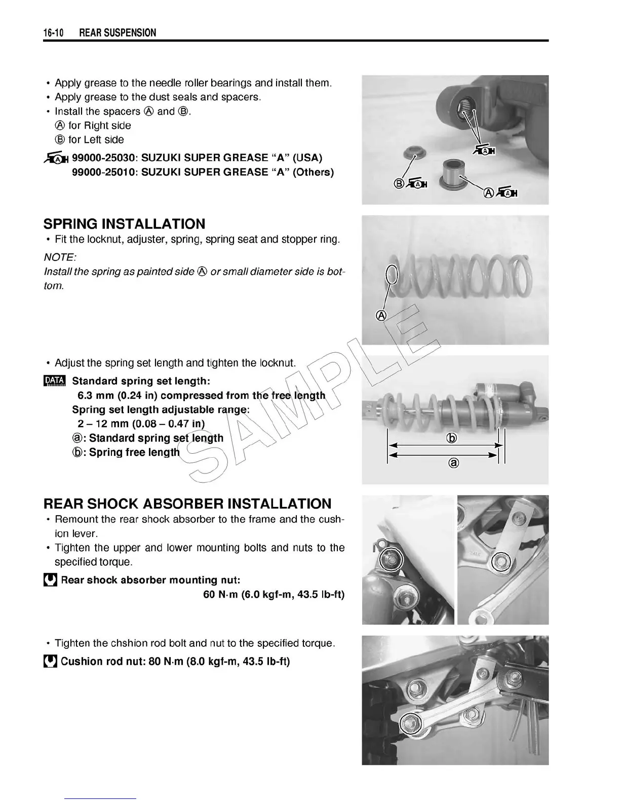 Suzuki RM 250 - Spring Installation; Rear Shock Absorber Installation