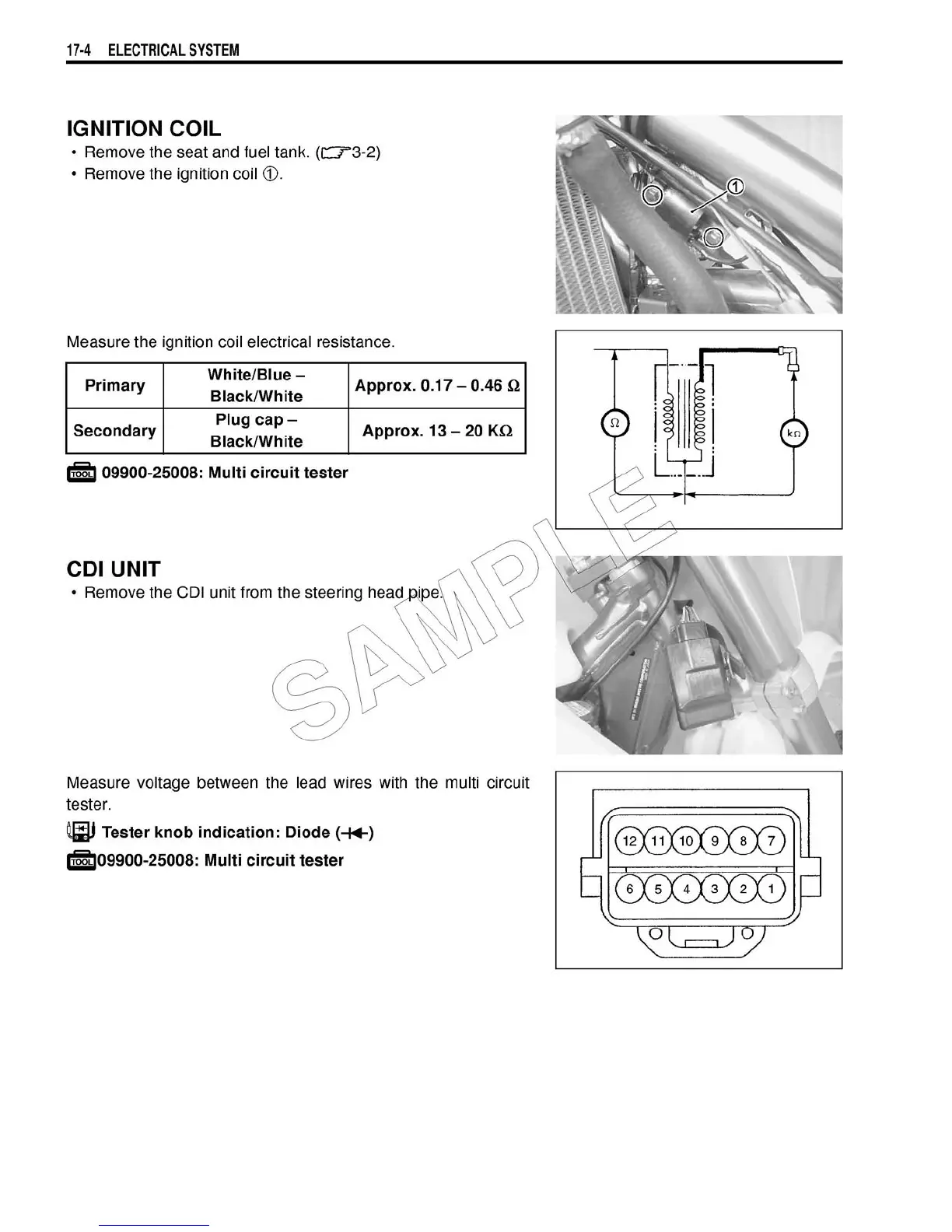 Suzuki RM 250 - Ignition Coil Inspection; CDI Unit Inspection