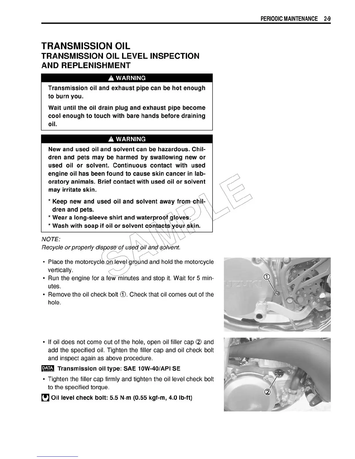 Suzuki RM 250 - Transmission Oil Level Inspection and Replenishment