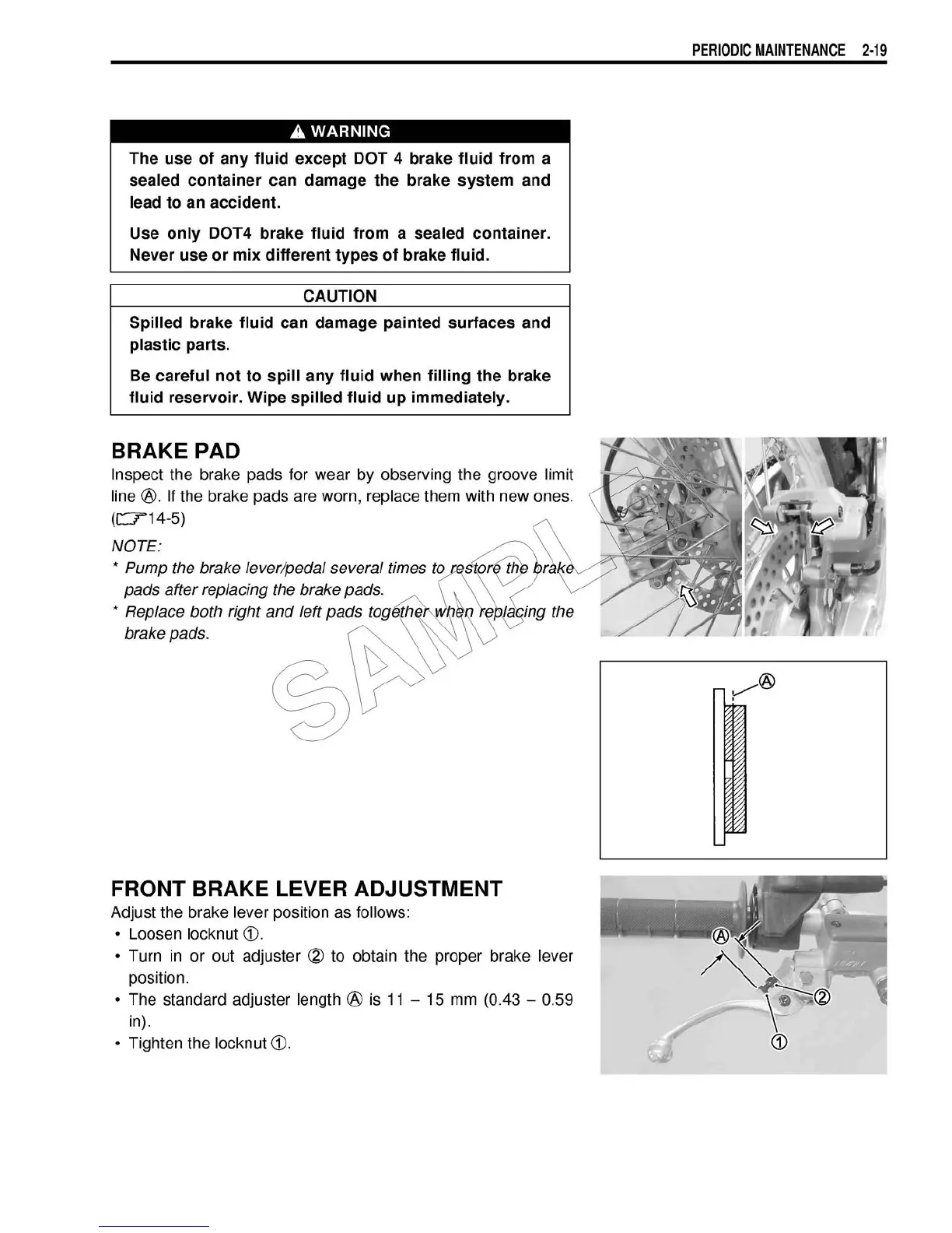 Suzuki RM 250 - Brake Pad; Front Brake Lever Adjustment