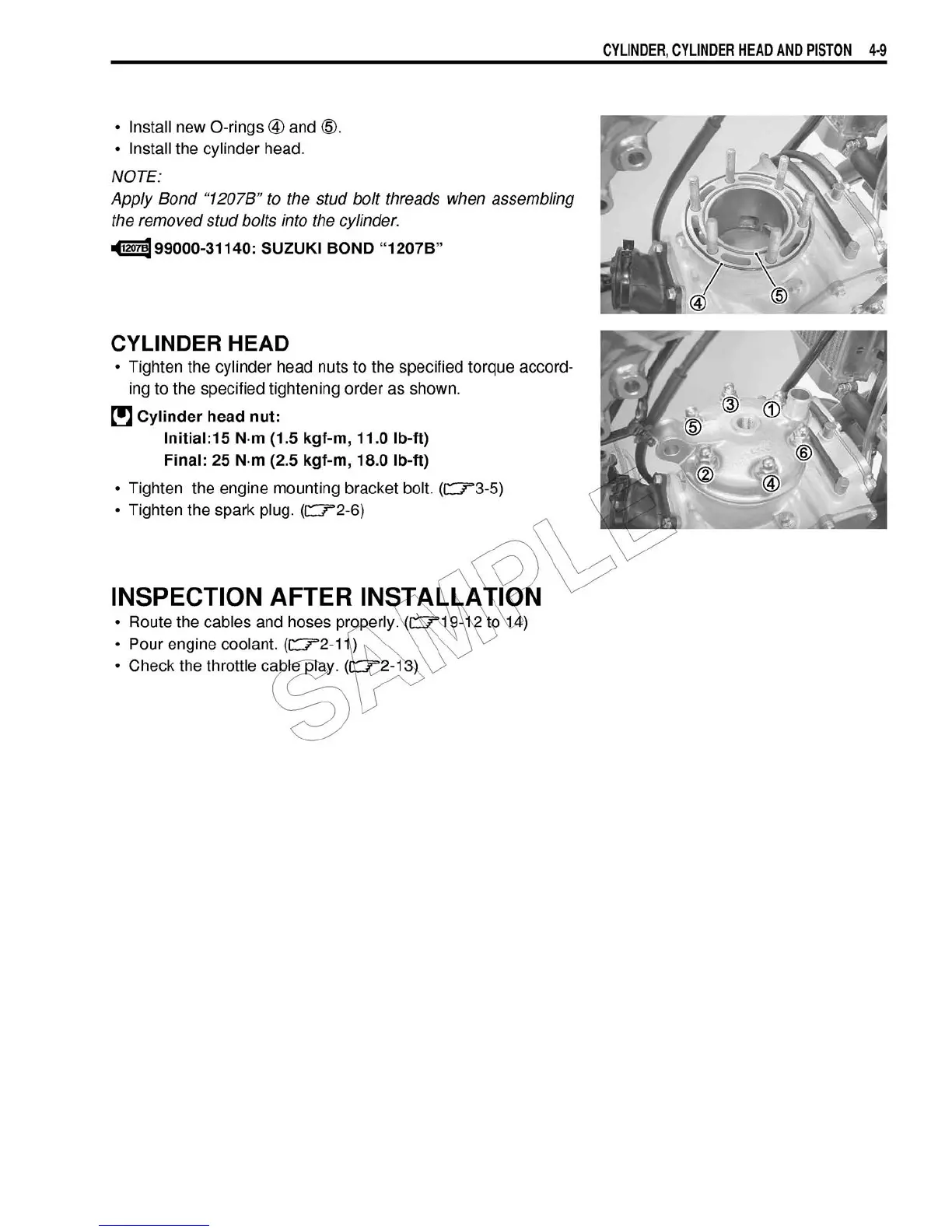 Suzuki RM 250 - Cylinder Head Installation; Inspection after Installation
