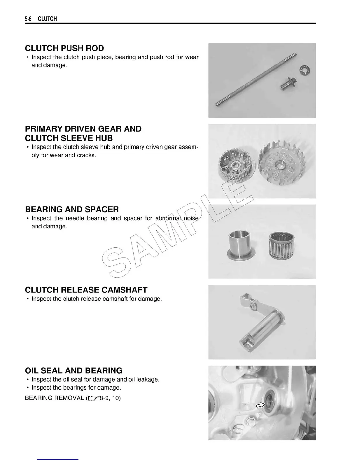 Suzuki RM 250 - Clutch Push Rod;Release Camshaft Inspection; Primary Driven Gear and Clutch Sleeve Hub Inspection; Bearing and Spacer Inspection; Oil Seal and Bearing Inspection