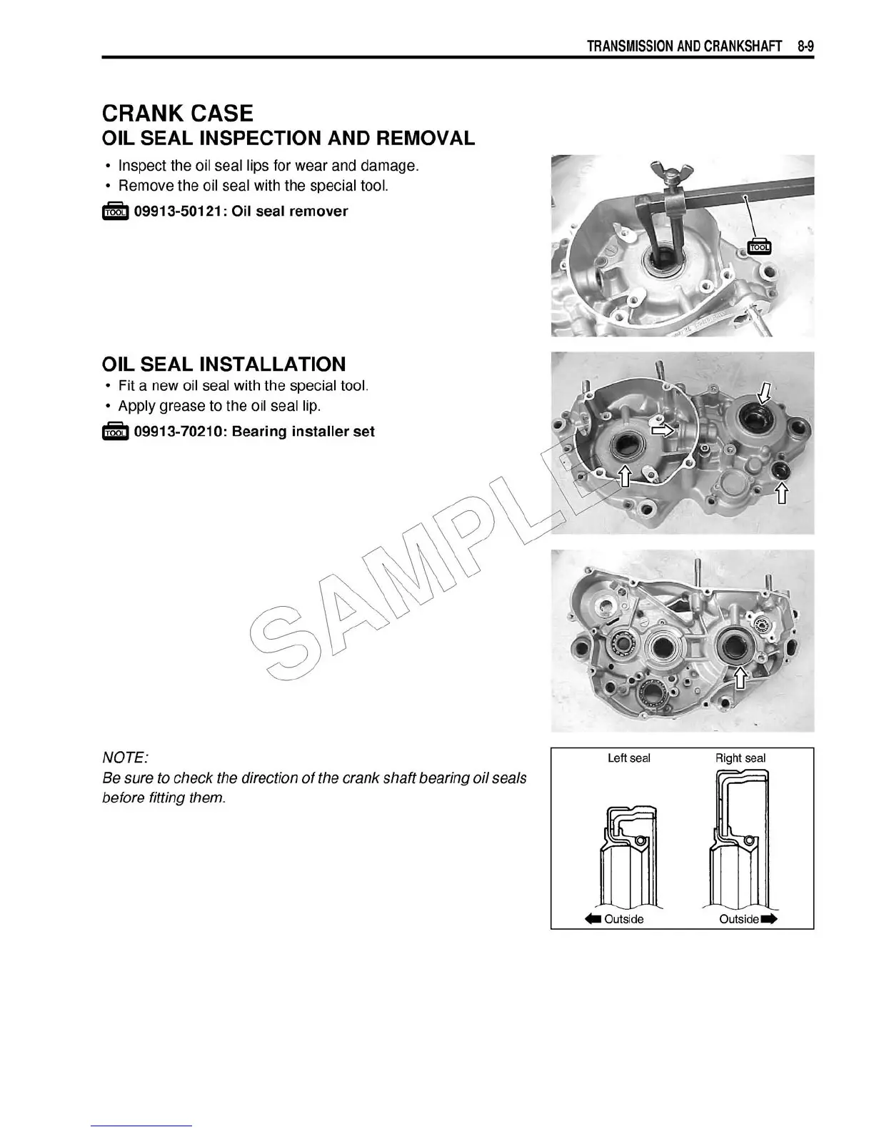 Suzuki RM 250 - Oil Seal Inspection and Removal; Oil Seal Installation