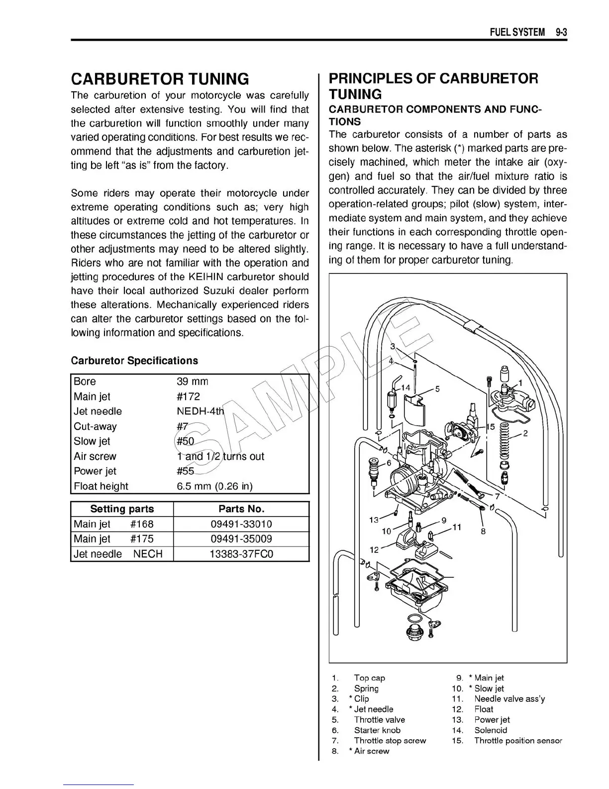 Suzuki RM 250 - Carburetor Tuning; Principles of Carburetor Tuning; Carburetor Specifications
