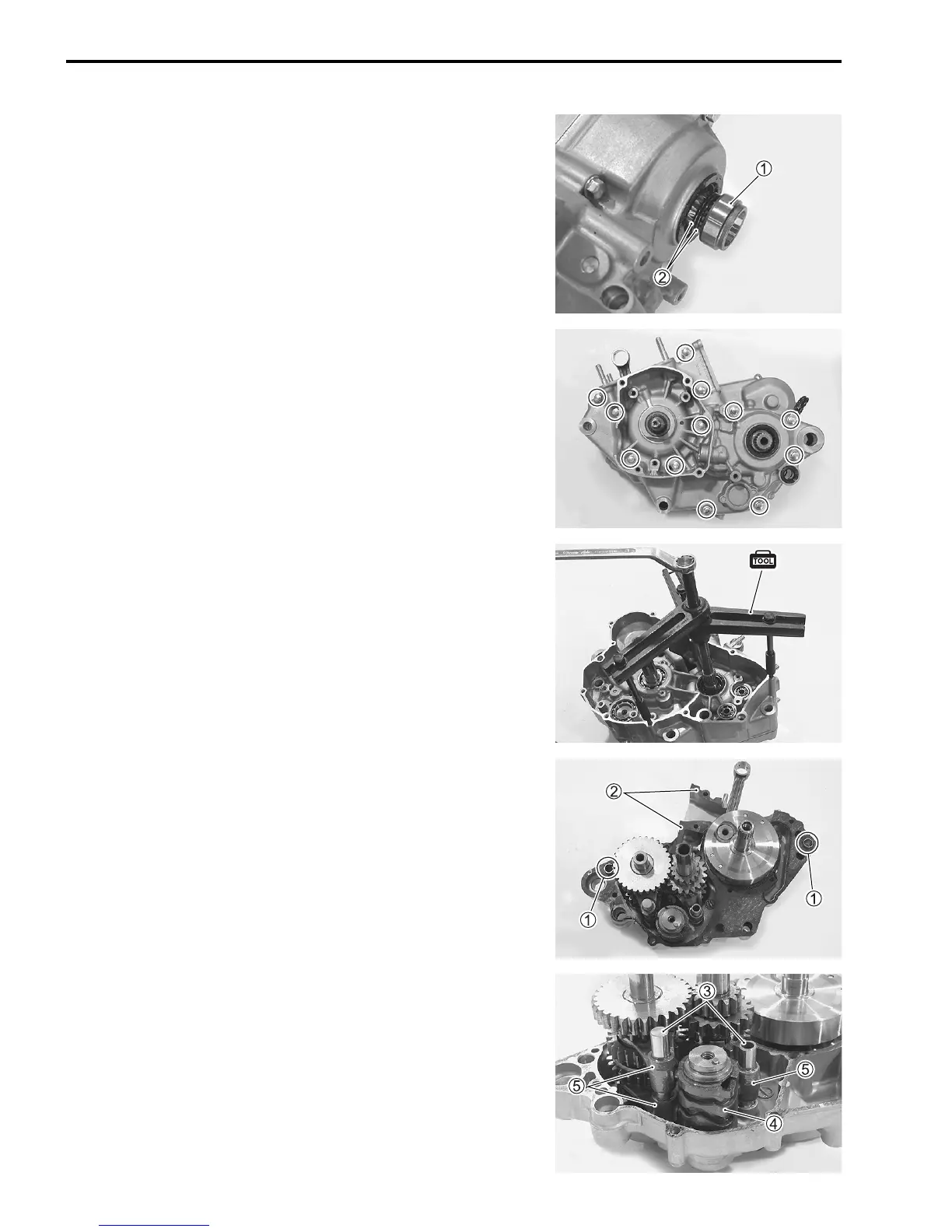 • Remove the engine sprocket spacer 1 and two O-rings 2.
