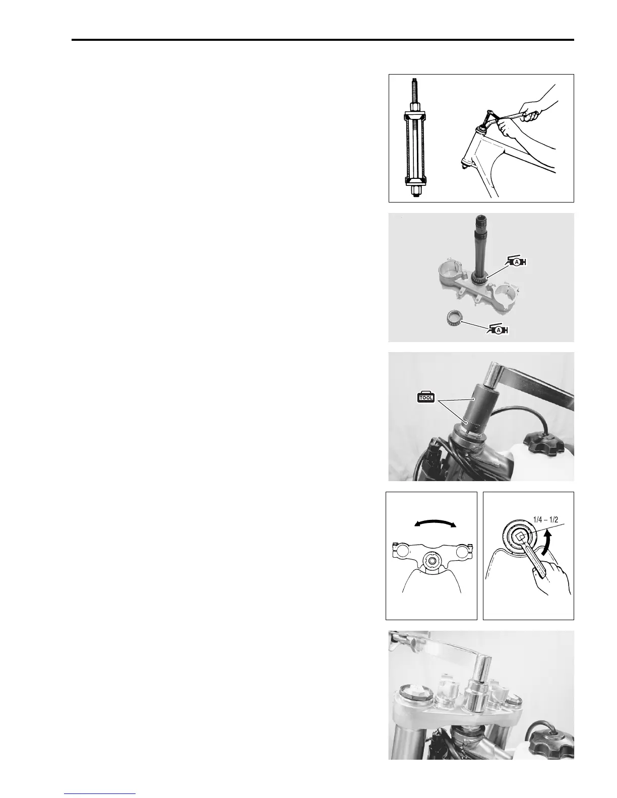 • Turn back the steering stem nut by 1/4 to 1/2 turn.