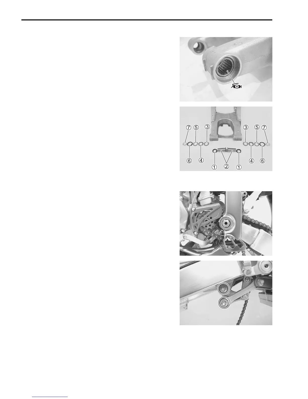 • Reassemble the following parts into the swingarm.