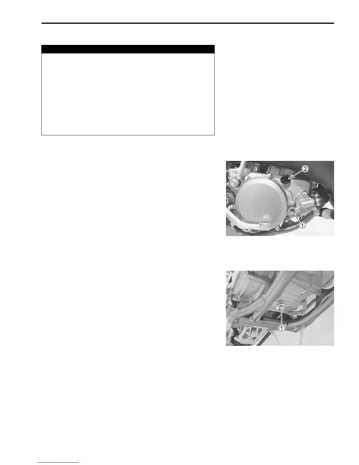 • Remove filler cap and drain plug 1. Drain oil thoroughly.