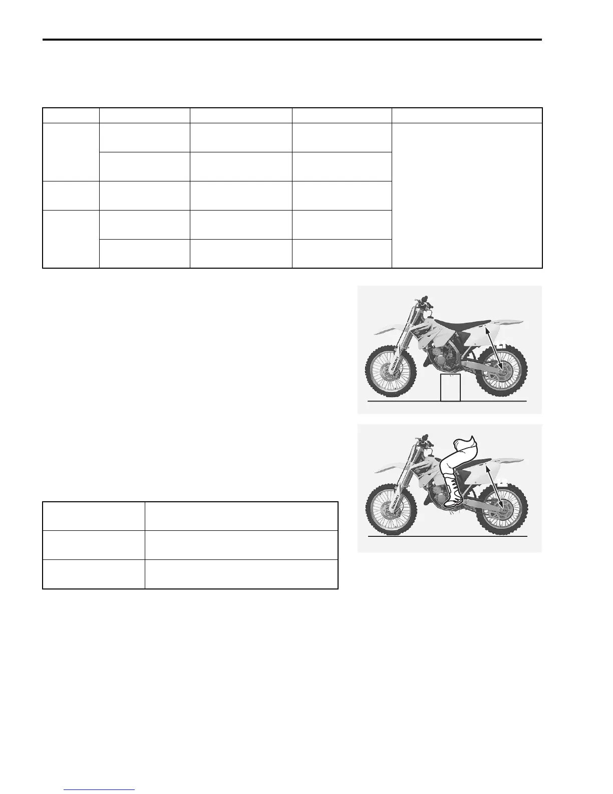 • Adjust the rear suspension according to the rider’s weight and preference by referring to the table below.