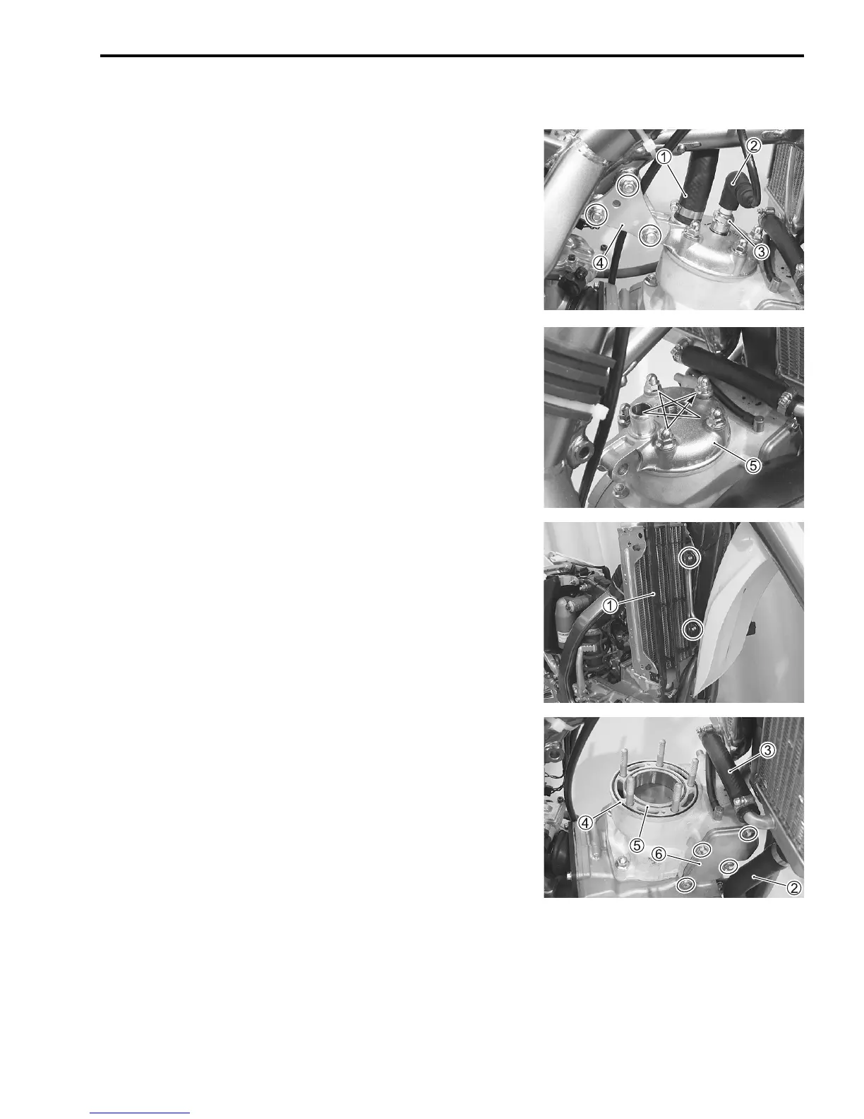 • Remove the radiator covers 1 and mounting bolts (LH and