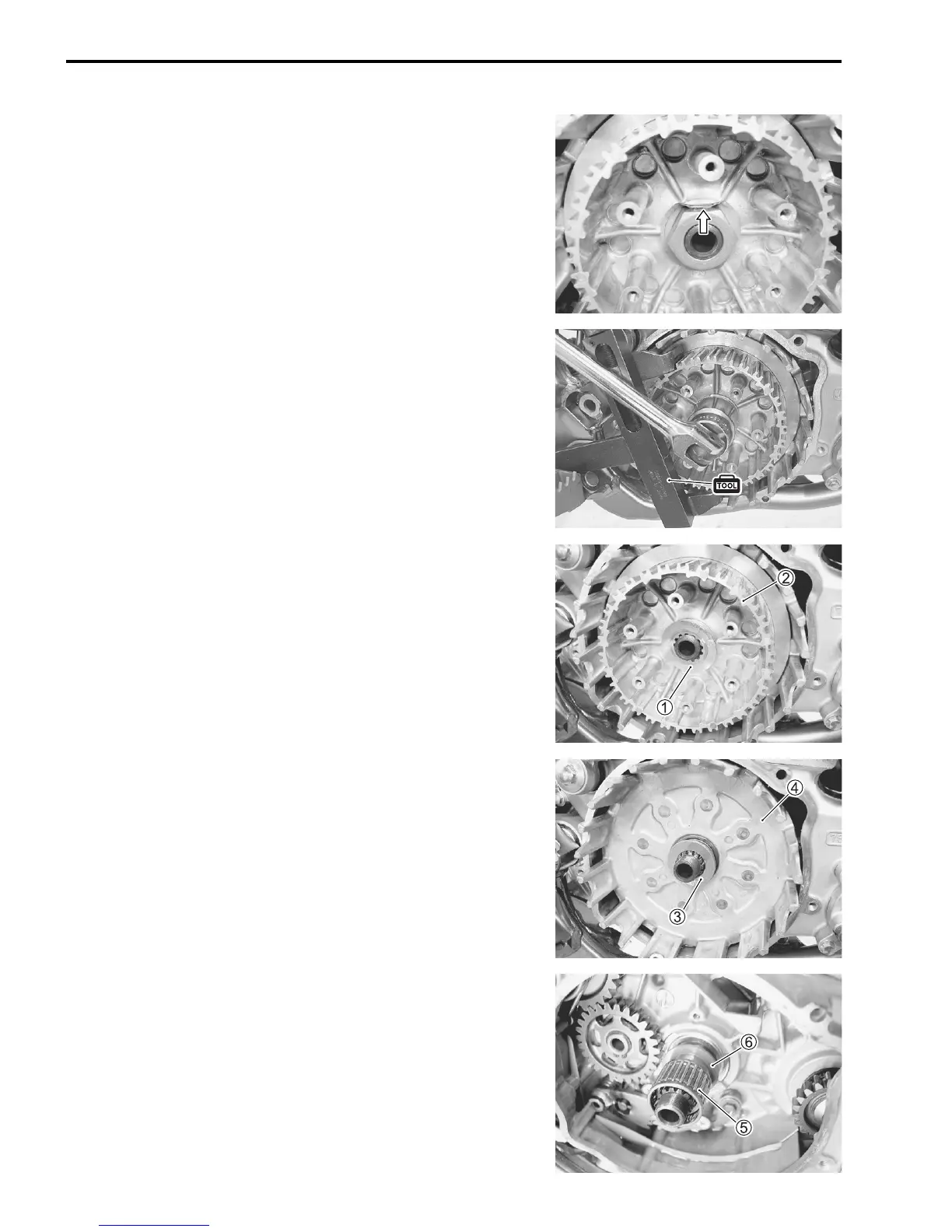 • Remove the lock washer 1 and clutch sleeve hub 2.