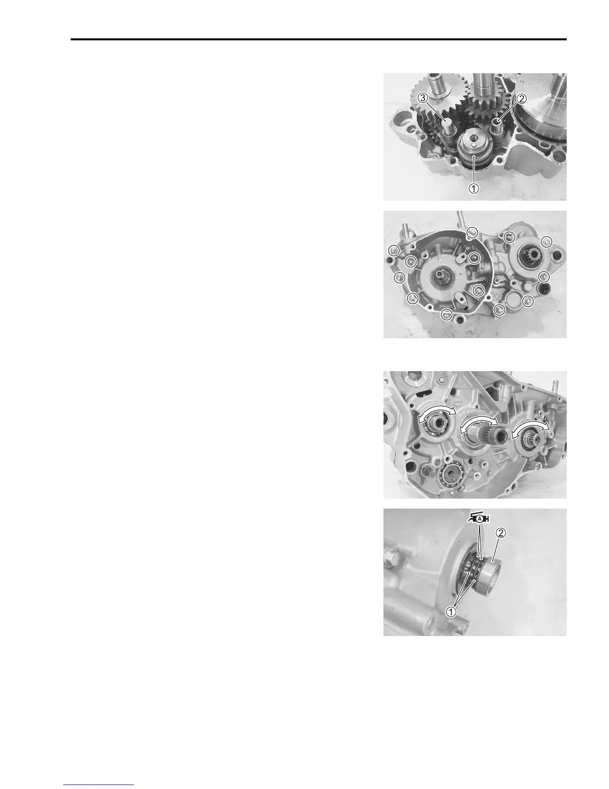 • Inspect the crankshaft, countershaft and driveshaft for smooth